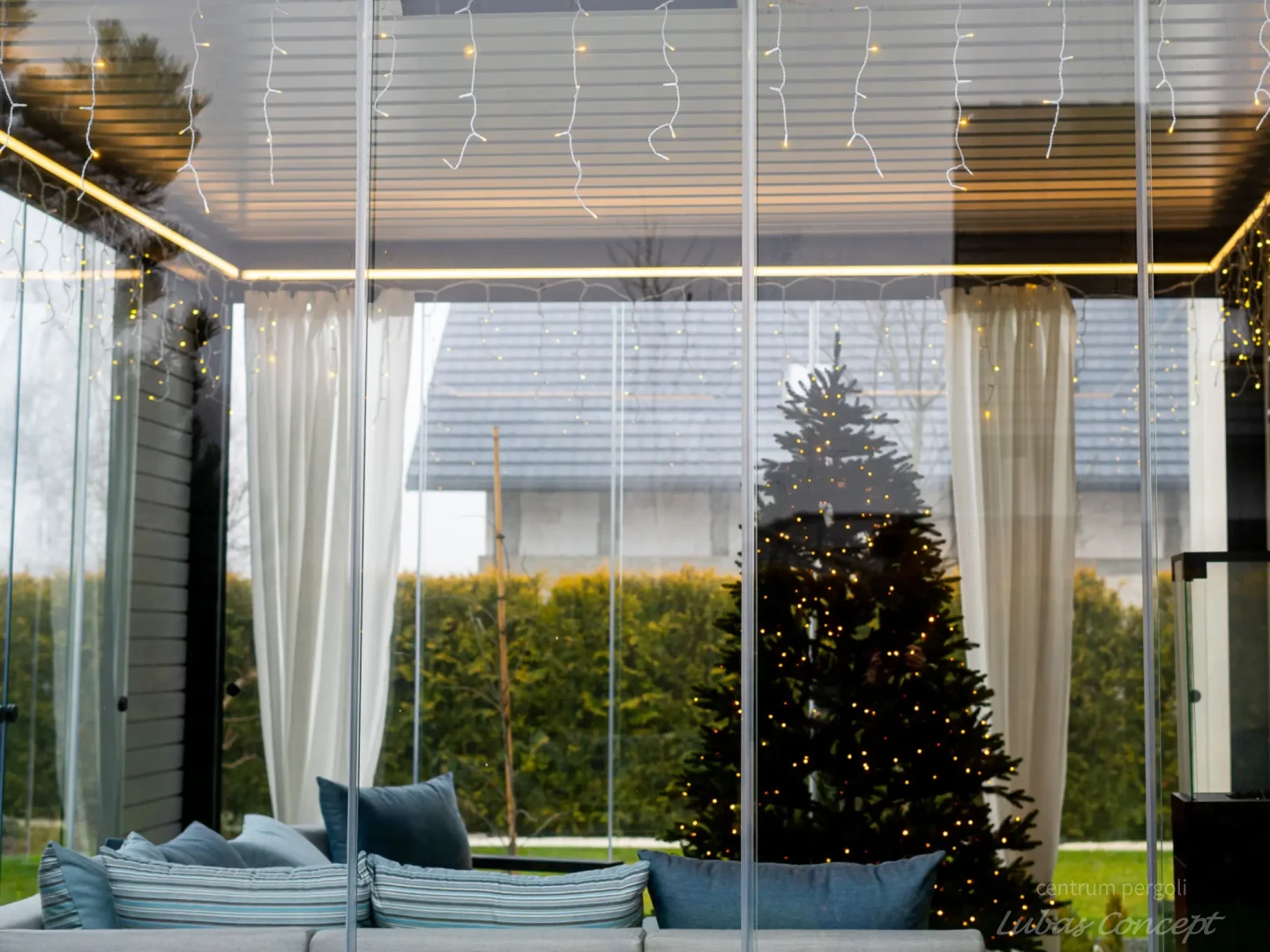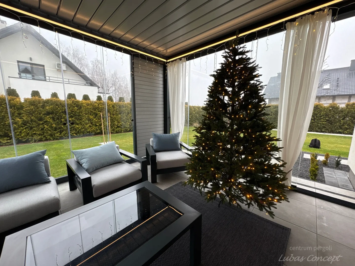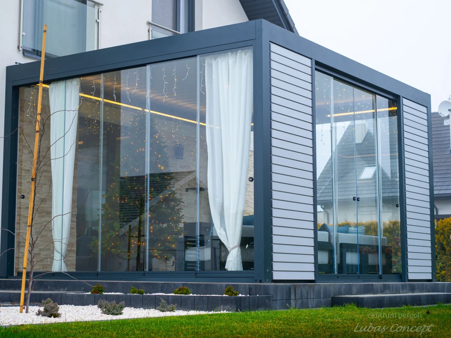 Sunbreaker + szyby przesuwne bezramkowe + shutters